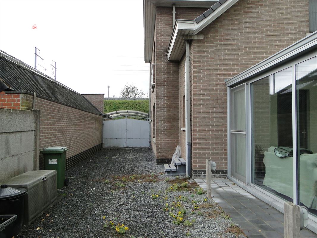 De woning is vandaag ingedeeld op het gelijkvloers met een inkomhal, zonnige living, een prachtig volledig ingerichte keuken en veranda met zicht op tuin en een kleine badkamer met douche.